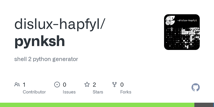 Hi all. Hacker, friend and mentor for all. Love to share knowledge and help others. I have built a shell DSL for Python. Check out the demo! YT link in repo link ![]()
